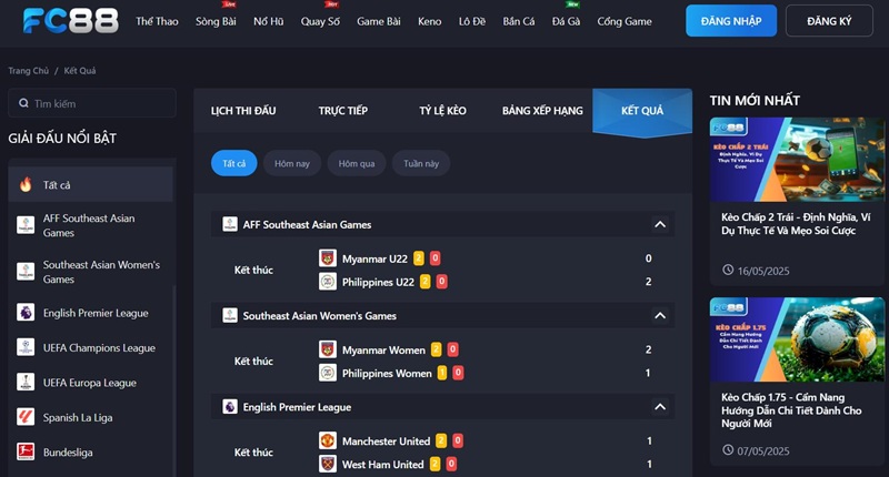 Kết quả bóng đá FC88 hôm nay