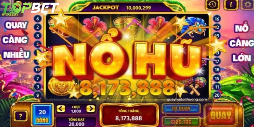 Nổ hũ topbet mang đến những khoảnh khắc hồi hộp, nơi mỗi vòng quay đều chứa cơ hội nhận phần thưởng khủng. Hệ thống game được thiết kế sống động, hiệu ứng bắt mắt và tốc độ mượt mà giúp người chơi trải nghiệm cảm giác căng thẳng xen lẫn hứng khởi.