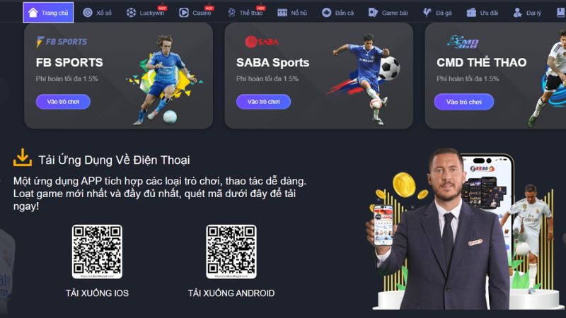 - Bước 1: Truy cập vào trang chủ của nhà cái và chọn mục “Tải xuống” ở góc dưới bên phải màn hình.